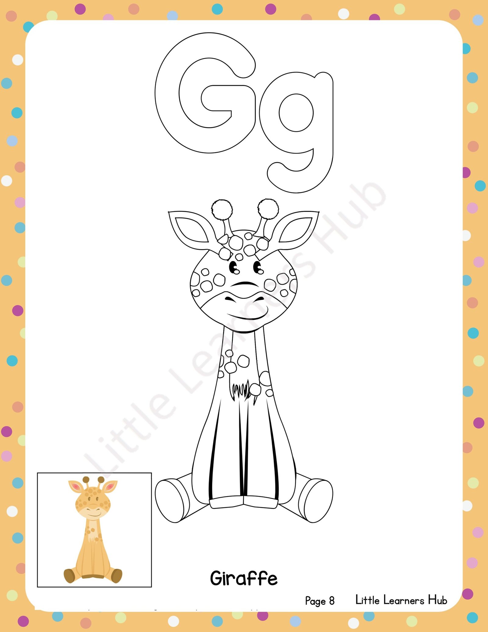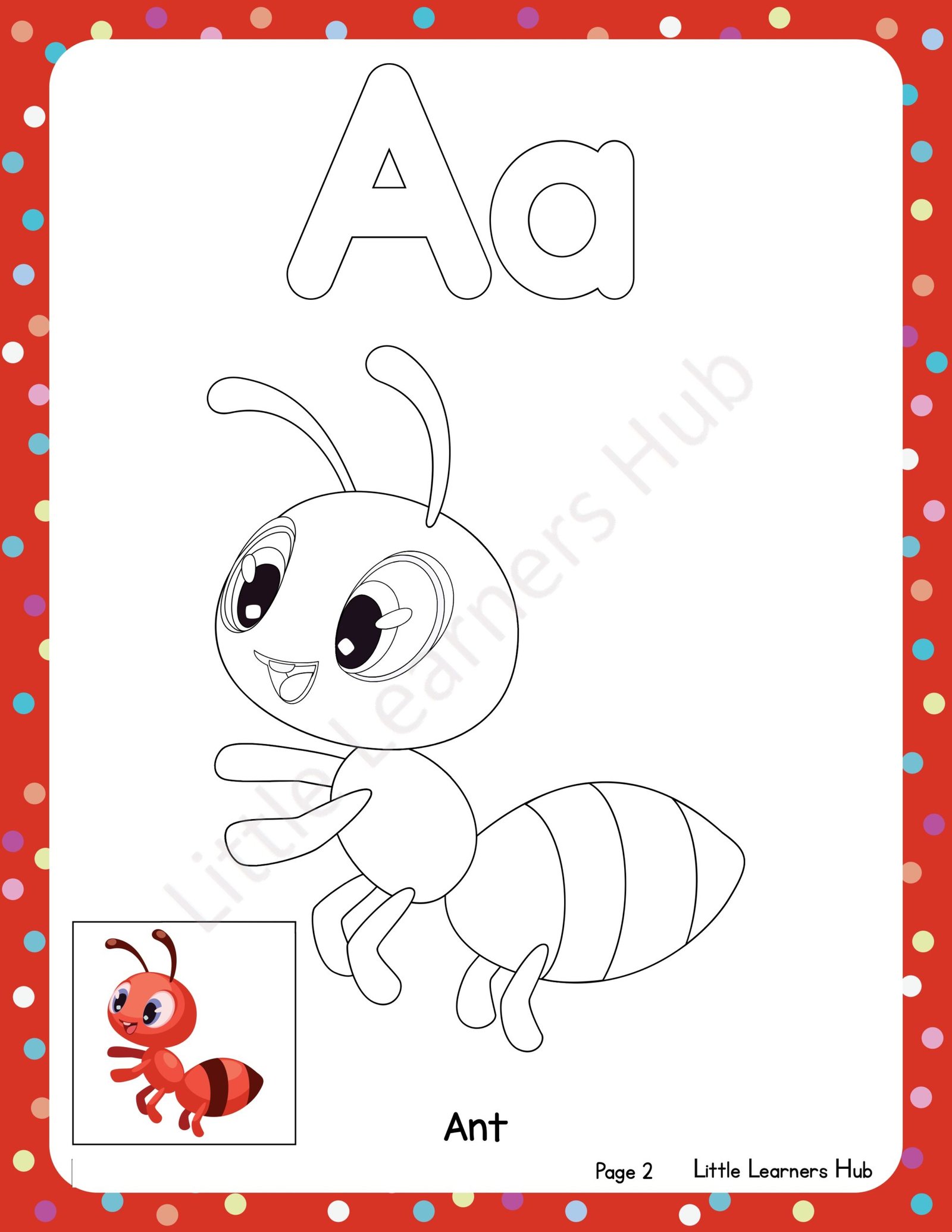 This adorable Alphabet Coloring Pack includes 26 printable pages — one for each letter A to Z — designed for preschoolers, kindergartners, and early learners.