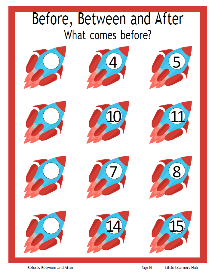 Fill in the missing numbers (Before, Between, After)