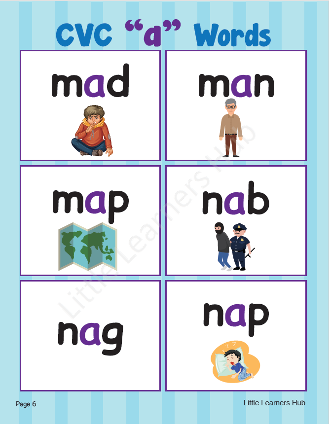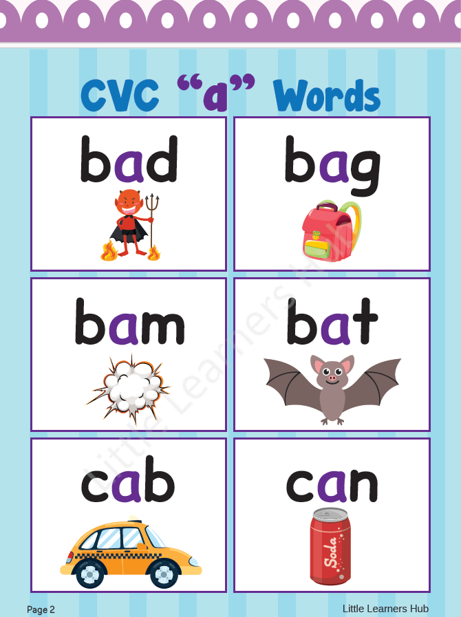 This 33-page resource is designed to help young learners identify, read, spell, and write Consonant-Vowel-Consonant (CVC) words, which form the backbone of early reading development.