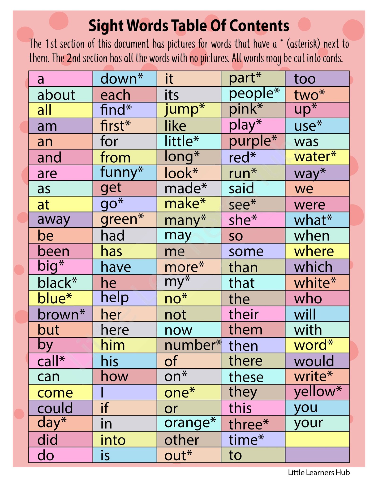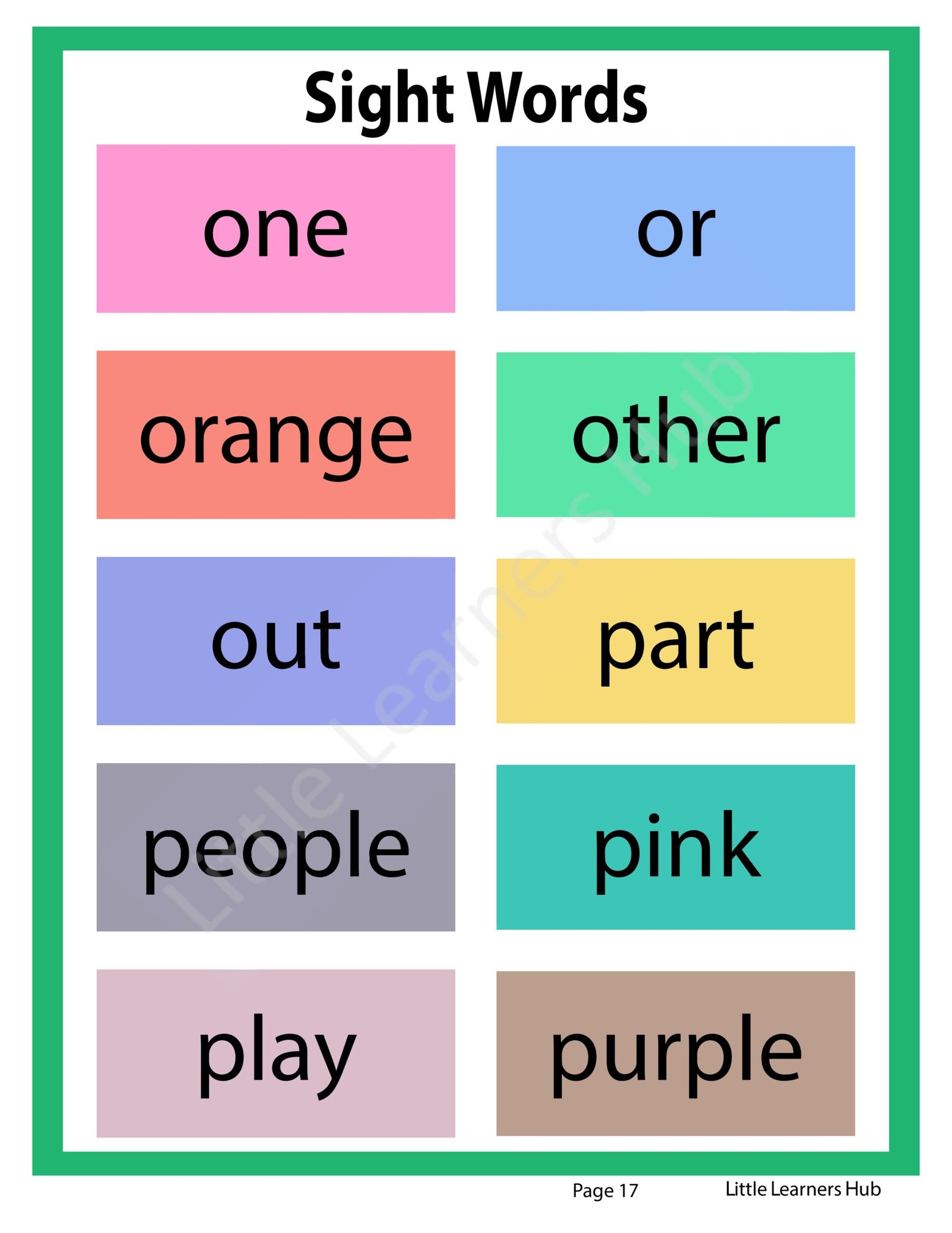 Not for resale or redistribution. Worksheets are based on public domain or royalty-free sight word lists and formatted by Little Learners Hub.