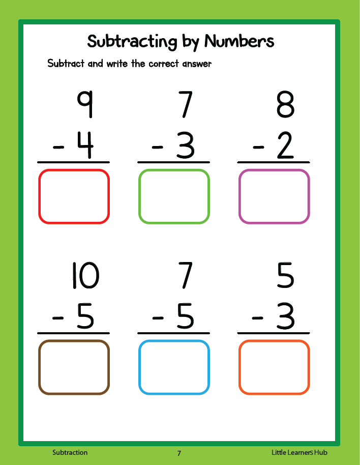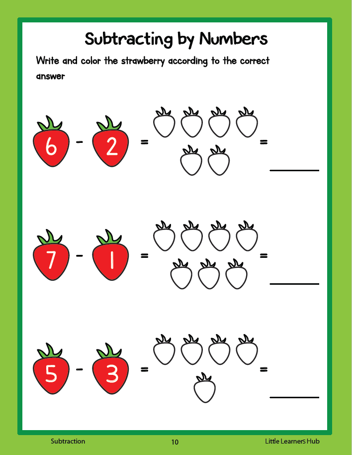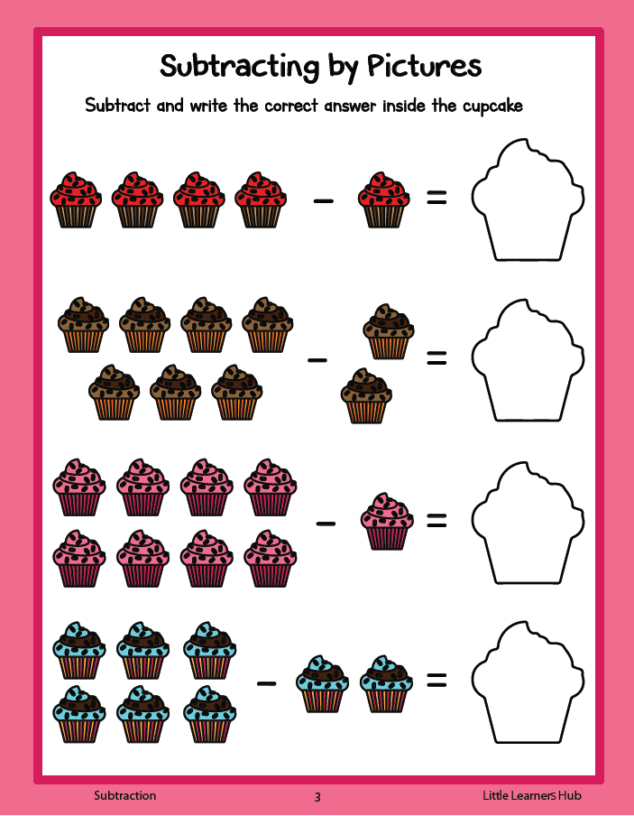 This Subtraction Worksheet Pack from Little Learners Hub includes 26 carefully designed pages that make learning subtraction simple and enjoyable for kids. It helps students visually understand “taking away” and prepares them for independent problem-solving.